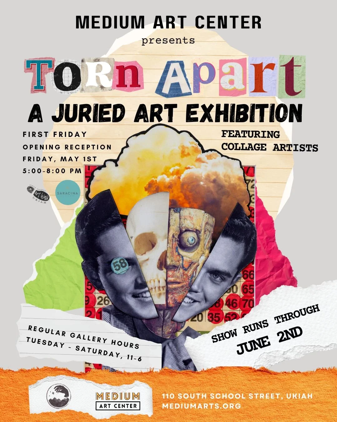 Medium Art Center is proud to present its upcoming May juried group exhibition, Torn Apart, exploring visual artwork in the medium of collage.